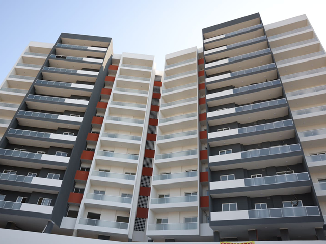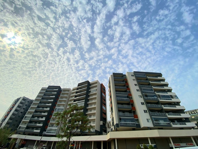 The project consists of one commercial and one residential tower in addition to a parking compound.